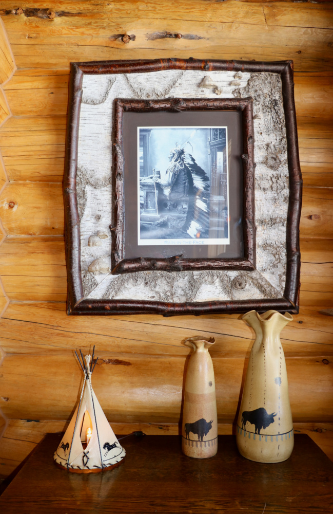General Manager Matthew Tousignant described the lodge’s history and ownership to me while pointing out its Western Craftsman architecture throughout the lobby, Cowboy Bar, and Tea Room. The rooms are tastefully appointed with original massive stone fireplaces, large antler chandeliers, and robust leather sofas juxtaposed with shuffleboard, darts, and large scale maps of the area. Matthew steered me into the masterpiece, the Great Room, where a fire crackled below a prominently displayed elk mount. I listened as he described the stunning artwork by nationally recognized artists Scott Peters, James Wilcox, and Scott Christensen that enhance the century-old dining hall, willing myself to remember each piece. Looking at the room’s scale, it was hard to imagine that the entire structure had been constructed in less than four months during a flurry of building to accommodate affluent Easterners who would spend the night before heading to Yellowstone National Park. The Lodge is listed on the National Park Services Register of Historic Places and was built in 1922 and was known at the time as the Two-Gwo-Tee Inn.